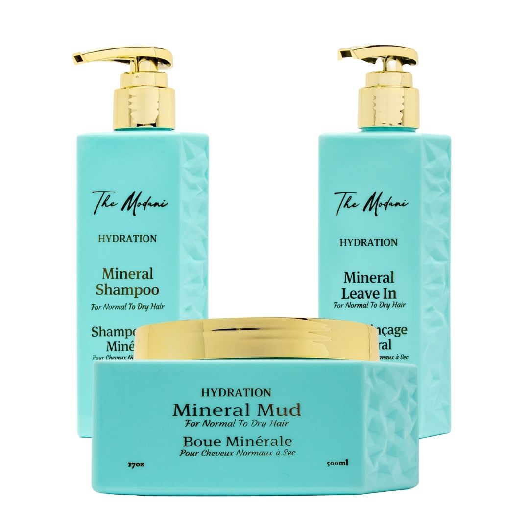 The ultimate moisture-boosting trio for normal, dry, damaged, and over-processed hair. This set combines the deep-cleansing and hydrating power of the Hydration Mineral Shampoo with the healing intensity of the Mineral Mud and the daily moisture support of the Hydration Mineral Leave-In. Each product works together to hydrate, repair, soften, and protect hair from root to tip — delivering salon-quality results at home.