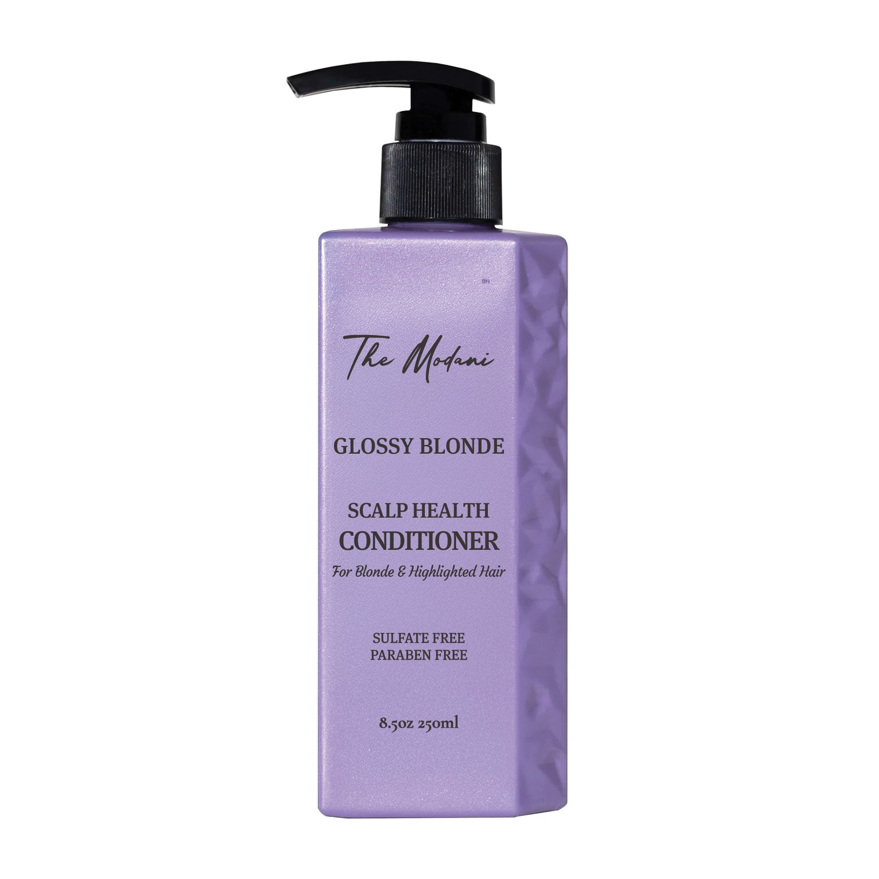 The Glossy Blonde Conditioner delivers weightless hydration and softness while supporting a calm, refreshed scalp. Formulated with zinc and tea tree oil, it helps maintain scalp comfort while smoothing and nourishing blonde hair.