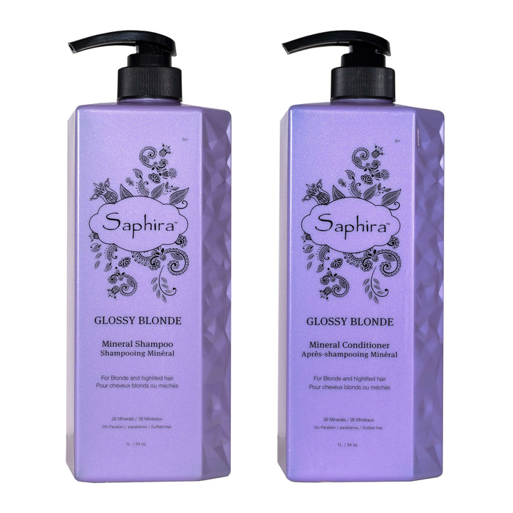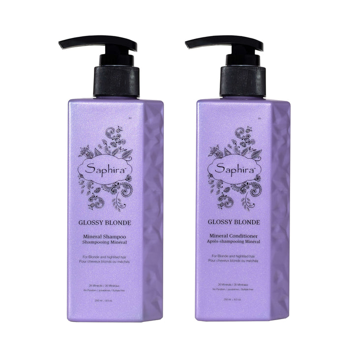 This shampoo & conditioner duo is the ultimate solution and treatment for blondes seeking to cleanse, condition, and correct those unwanted orange, yellow and brassy tones. Saphira's Glossy Blonde Shampoo & Conditioner neutralizes, enhances and tones while allowing mother nature to heal, hydrate and restore every blonde beautiful strand.